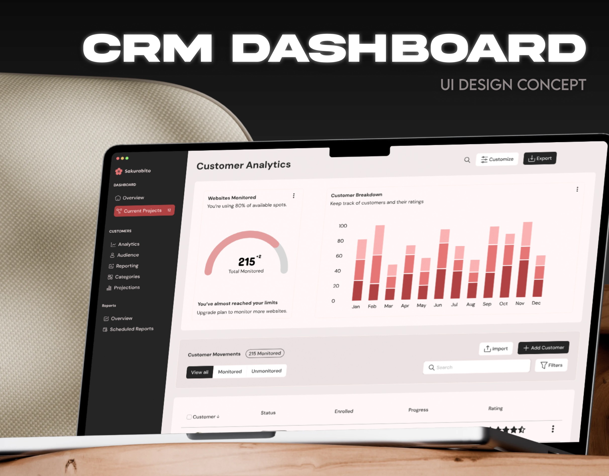 A clean CRM dashboard concept designed to track customers, manage leads, and visualize performance through clear layouts, intuitive navigation, and data-driven insights.